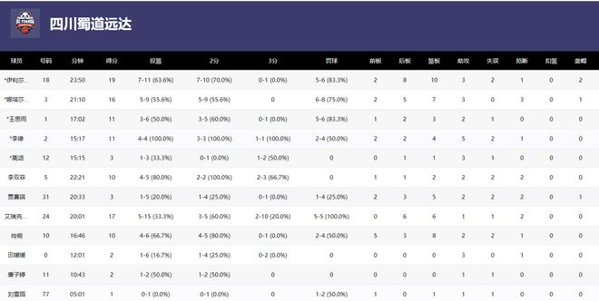 在四川队有三个顶级外援的情况下,王思雨依旧是这支四川女篮的先发,全场比赛17分钟,6中3,拿到11分3篮板2助攻1抢断1失误,命中率50%,正负值+20。三个外援的数据为:坎贝奇19分10篮板,奥贡鲍尔17分6篮板,霍华德16分7篮板。