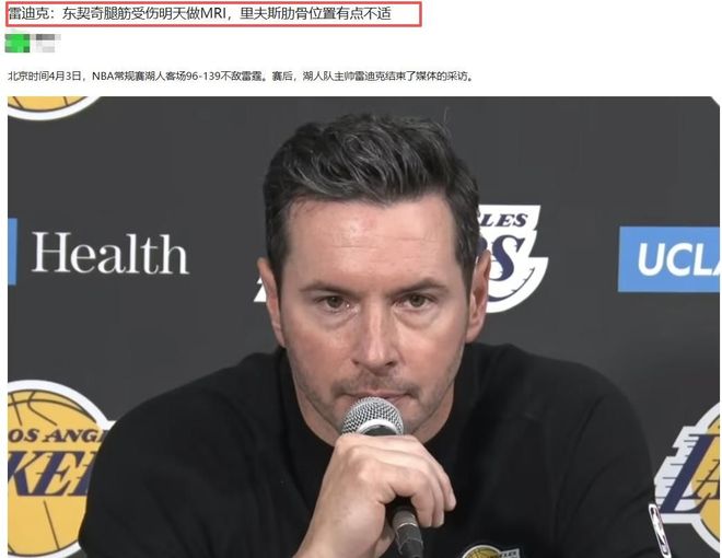里夫斯轻伤坚持、东契奇提前退场,再叠加以43分的耻辱性失利,湖人整体战力已遭结构性削弱。