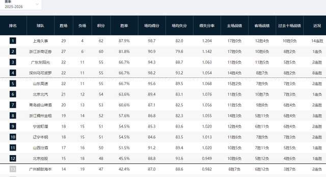 - CBA最新排名:上海稳居第一 深圳战绩狂飙 季后赛格局渐渐清晰