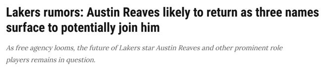北京时间4月4日,ClutchPoints名记西格尔报道称,里夫斯不会离开湖人,另外湖人今夏急需补强侧翼锋线,三个引援目标被提及。