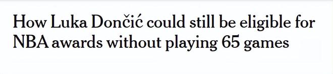 若不是上周因累计16次技术犯规被强制禁赛一场,东契奇本也能达到65场门槛。他因此缺席了周二湖人对阵奇才的比赛。
