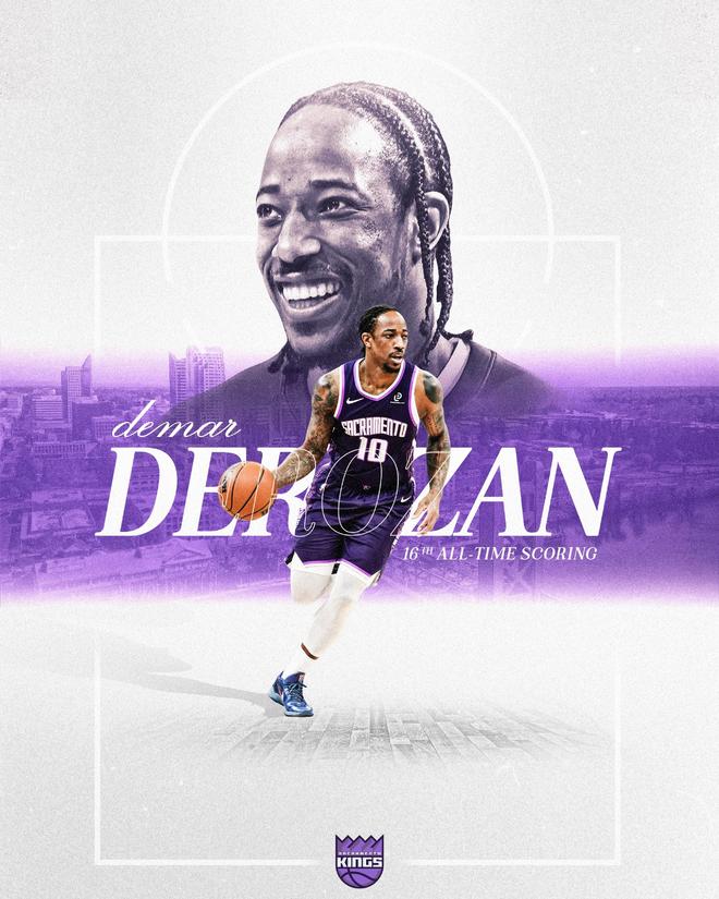 德罗赞生涯总得分来到26711,超越大O升至历史第16