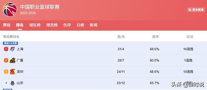 反观山东与深圳,则以近乎疯狂的竞技状态强势搅局,成为本轮卡位战中最不可忽视的变量。