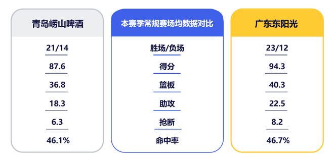 韦瑟斯庞是青岛队头号杀手锏,其以场均23.2分位列联盟第四,场均助攻同样跻身前十。首回合,韦瑟斯庞拿到22分8助攻,而在上一轮与山西队的比赛中,他高效砍下35分6助攻,是球队绝对的进攻核心和战术枢纽。米奇场均可得到18.8分,同样是战术体系中不可或缺的一环。本场比赛,能否利用针对性防守限制对方两名强力外援的配合与出手,对广东队尤为重要。此外,王睿泽、段昂君和赵嘉义等领衔的外线射手群也颇具威慑,青岛队目前场均命中10.4记三分,排在联盟第五。广东队此战须重视对对方外线的防守,不给其拉开空间轻松出手的机会。