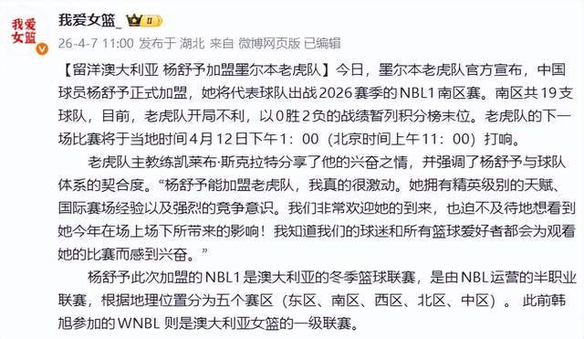 如今,她选择在WCBA赛季结束后,奔赴NBL1南区——这个澳大利亚半职业联赛的竞技熔炉。尽管墨尔本老虎队开局0胜2负,暂列积分榜末位,但主教练凯莱布·斯克拉特直言:“她拥有精英级别的天赋、国际赛场经验与强烈的竞争意识。”这不仅是对杨舒予能力的认可,更是对“中国队长”价值的全球背书。她不是来避风港,而是来淬火——在高强度对抗中打磨节奏控制力,在陌生体系中提升战术适应性,为更高舞台积蓄能量。