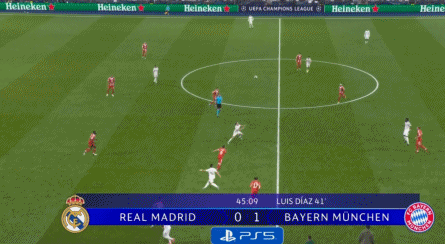 第41分钟,维尼修斯传球出现失误,拜仁前场觅得进攻机会,格纳布里直塞助攻迪亚斯推射破门,拜仁客场取得领先。