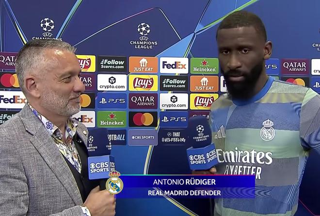 在主场1-2不敌拜仁的赛后,皇马后卫吕迪格接受了CBS体育的采访。